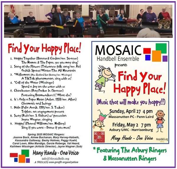 Ringers: Joanne Bock, Aimee Buchanan, Riikka Halme-Berneking, Peggy Kuehl, Kath Wissinger, Maryann Wolfe